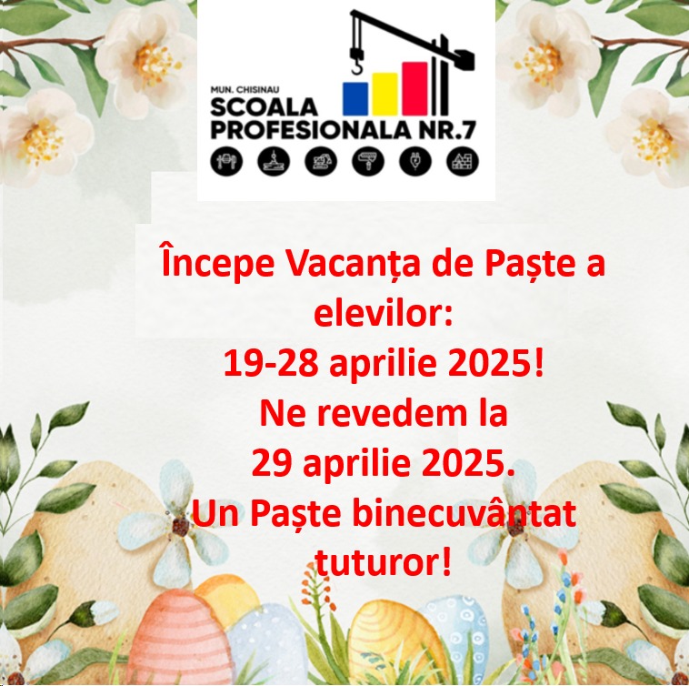Cu ocazia Sfintelor Sărbători de Paște, vă dorim din suflet ca lumina și pacea acestei sărbători să vă aducă sănătate, bucurie și liniște sufletească.