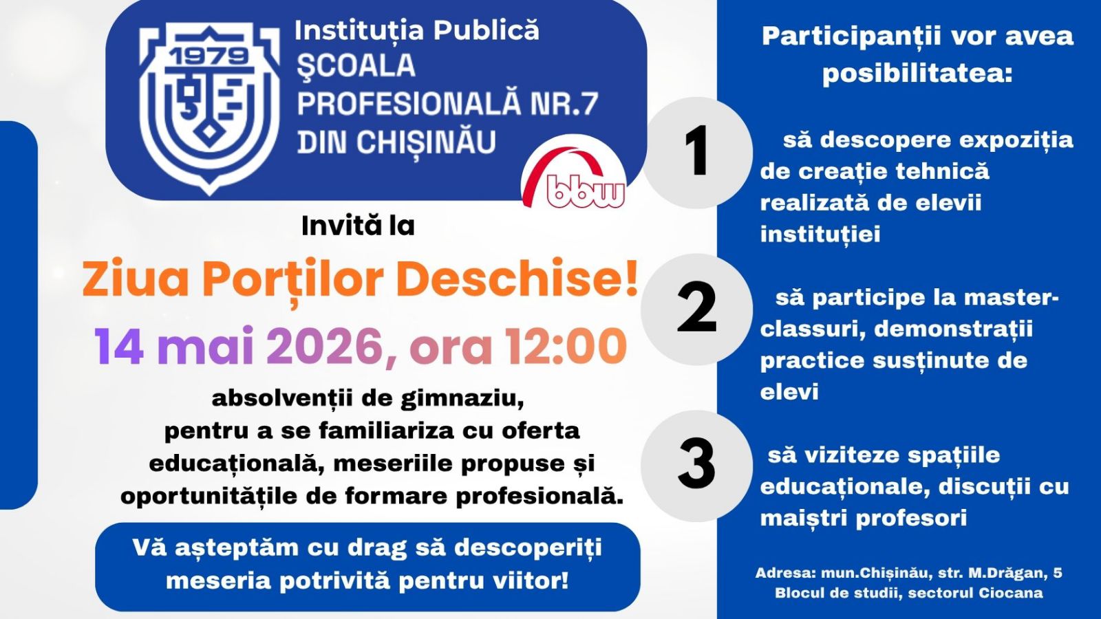 14 mai 2026 | ora 12:00 | Școala Profesională nr.7, mun. Chișinău