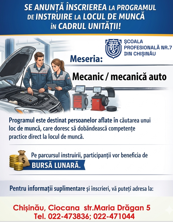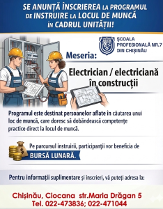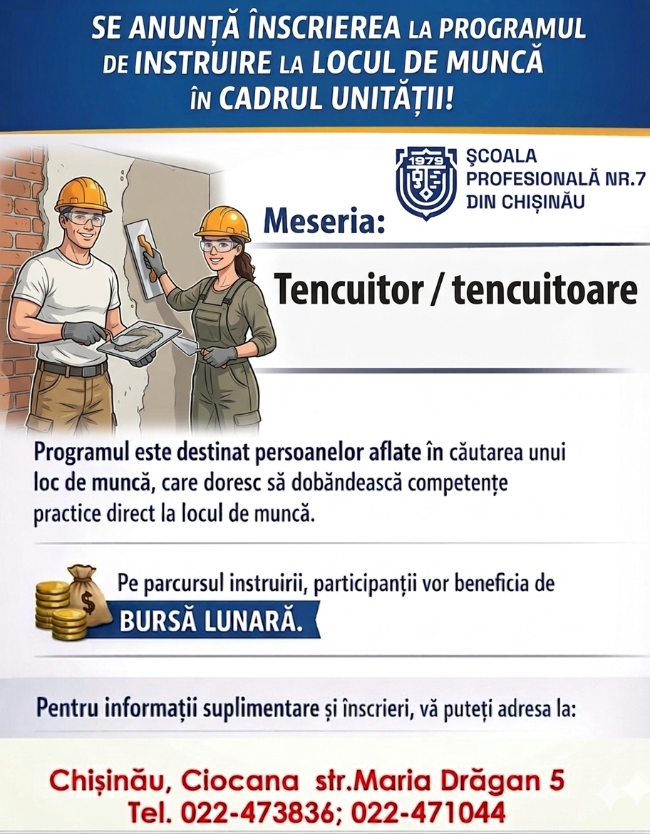 Școala Profesională nr.7, mun. Chișinău dă startul noii serii de cursuri de formare profesională pentru adulți!